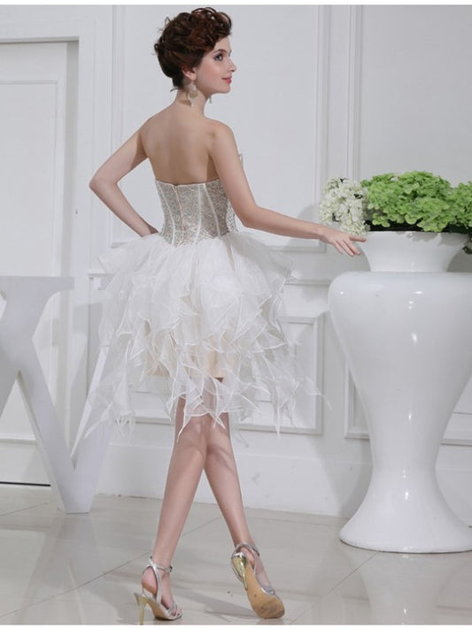 Vestidos de cóctel cortos de organza con escote corazón, sin mangas y corte A/princesa con cuentas