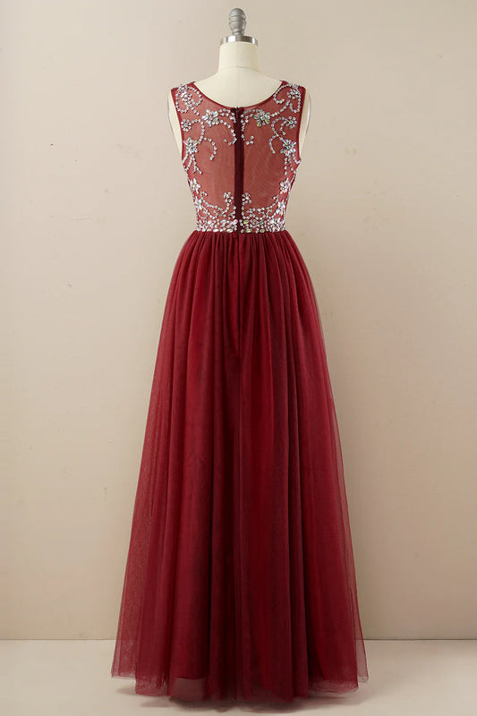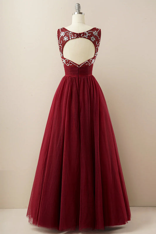 Hermoso vestido de fiesta rojo con escote en forma de corazón y cuentas