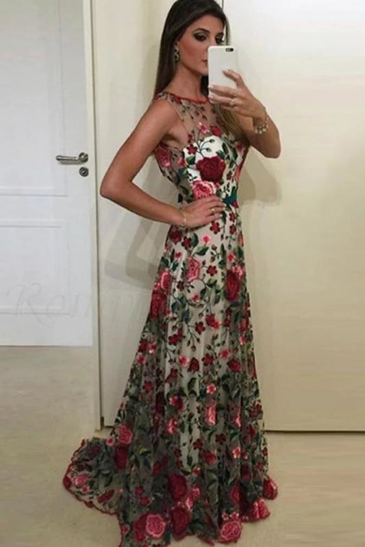 Hermosos vestidos de fiesta con escote redondo, vestido de fiesta de encaje con bordado floral de Aline Rose