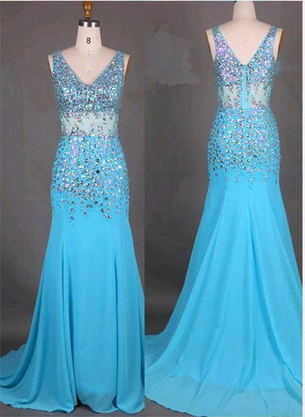 Vestidos de fiesta con escote en V y corpiño de cuentas tipo columna