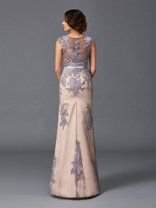 Vestidos largos de satén sin mangas con apliques y tirantes de tubo/columna