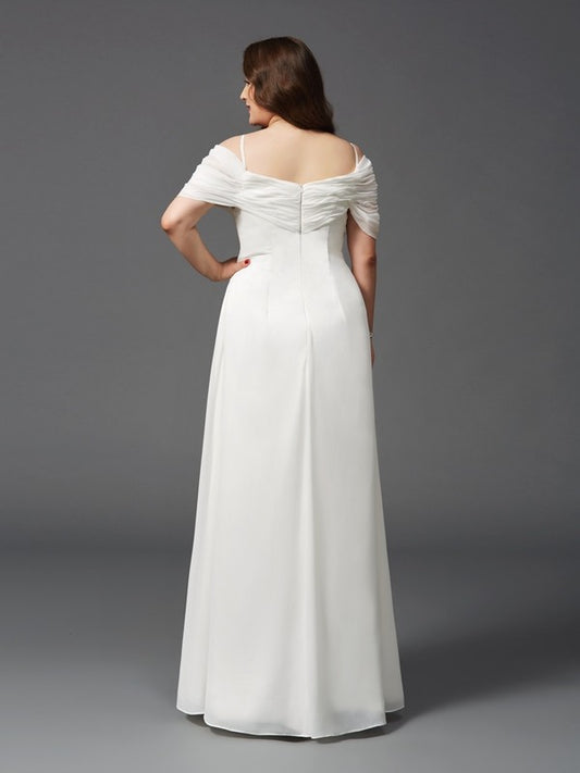 Vestidos largos de gasa de talla grande, corte A/princesa, hombros descubiertos, fruncidos, mangas cortas