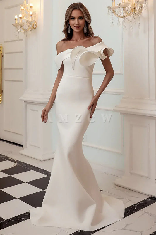 Vestido de fiesta blanco de sirena con un hombro al descubierto Amzcw, vestidos de noche, vestidos de fiesta, tiendas de vestidos de fiesta.