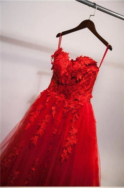 Vestido de fiesta con cuello redondo y apliques de tul rojo para quinceañeras
