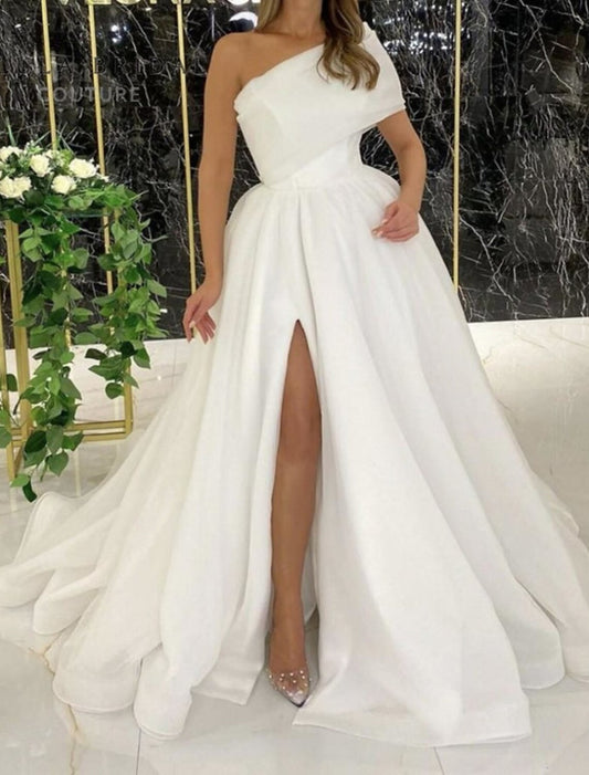 Vestido de fiesta, vestido de noche, estilo celebridad, vestido para invitados de boda, cumpleaños, cola de corte, sin mangas, un hombro, miércoles, familia Addams, organza con abertura, color puro