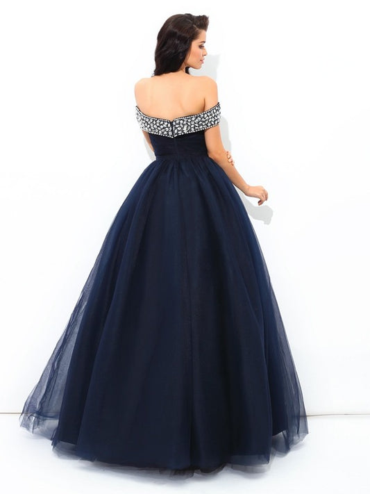 Vestidos de quinceañera largos de red, sin mangas, con hombros descubiertos y cuentas