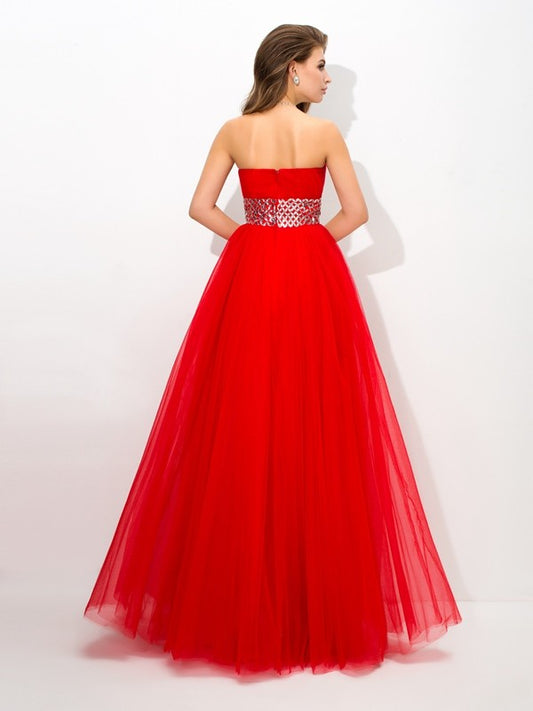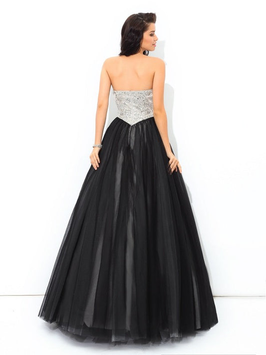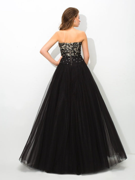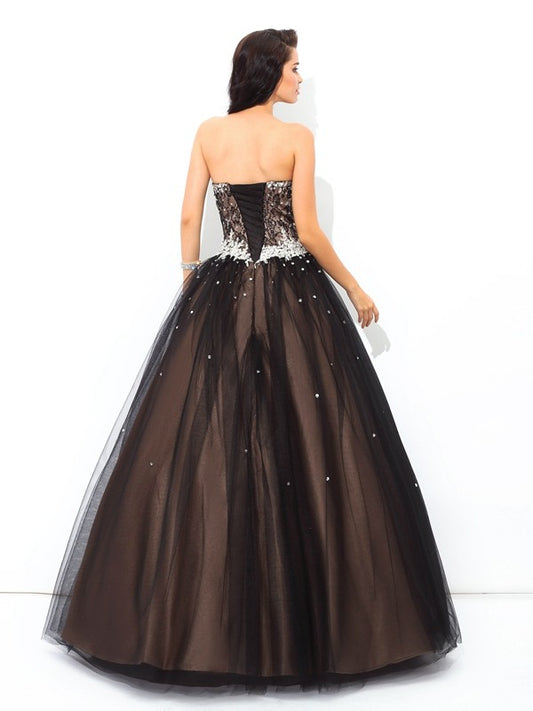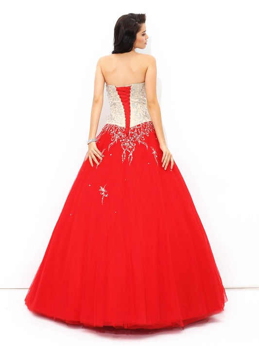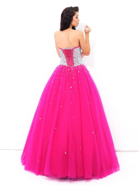 Vestidos de quinceañera largos de tul sin mangas con escote en forma de corazón y cuentas