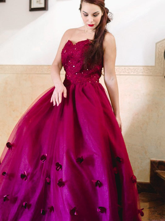 Vestidos de fiesta con apliques de tul y escote corazón, sin mangas y largos hasta el suelo