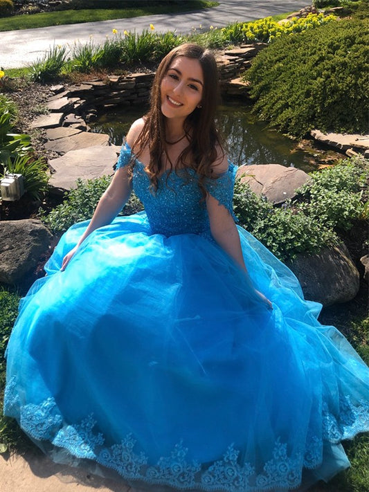 Vestidos de fiesta con hombros descubiertos, encaje, tul, sin mangas y hasta el suelo