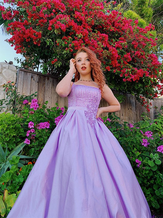 Vestidos de quinceañera largos de tafetán sin mangas y sin tirantes
