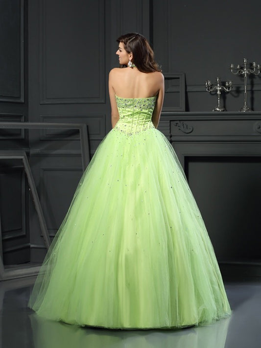Vestidos de quinceañera largos de tul sin mangas con escote en forma de corazón y cuentas