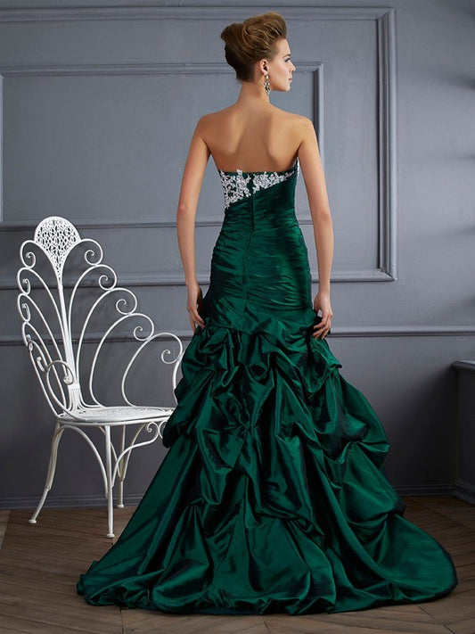 Vestidos de quinceañera largos de tafetán con apliques de cuentas y escote corazón sin mangas