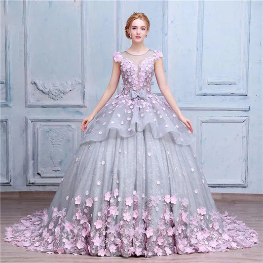 Vestidos de quinceañera con escote redondo y flores bonitas, vestidos de baile largos sin espalda, vestidos de novia