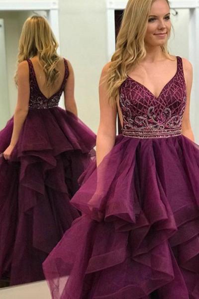 Vestido de fiesta formal largo con escote en V y espalda abierta, estilo princesa, para quinceañeras