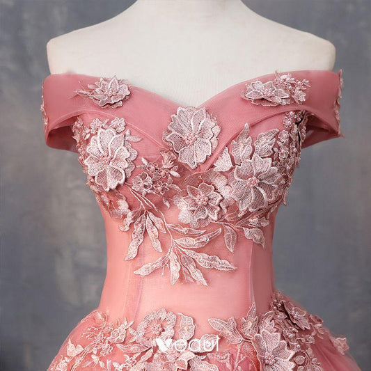 Vestido de fiesta largo con hombros descubiertos y encaje de princesa, vestidos de quinceañera