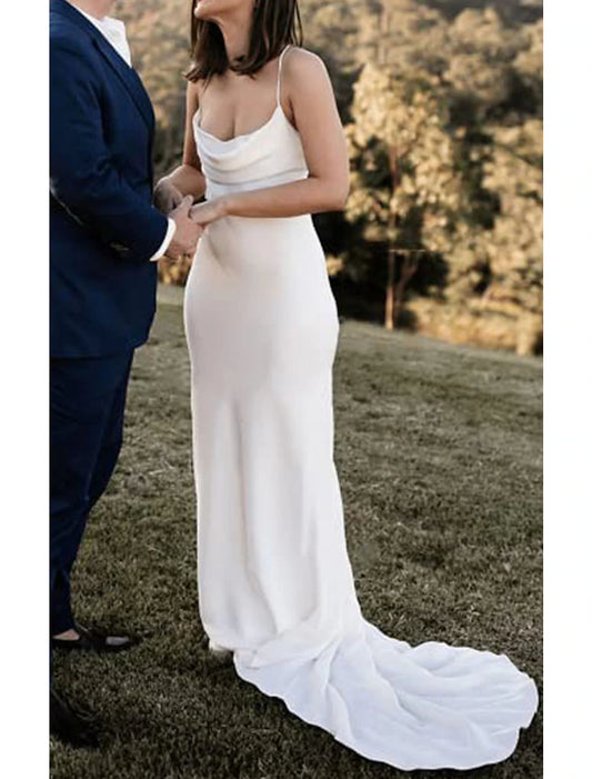 Vestidos de novia casuales de salón, corte sirena/trompeta, tirantes finos, camisola, tirantes finos, cola de corte, vestidos de novia de satén con abertura frontal fruncida
