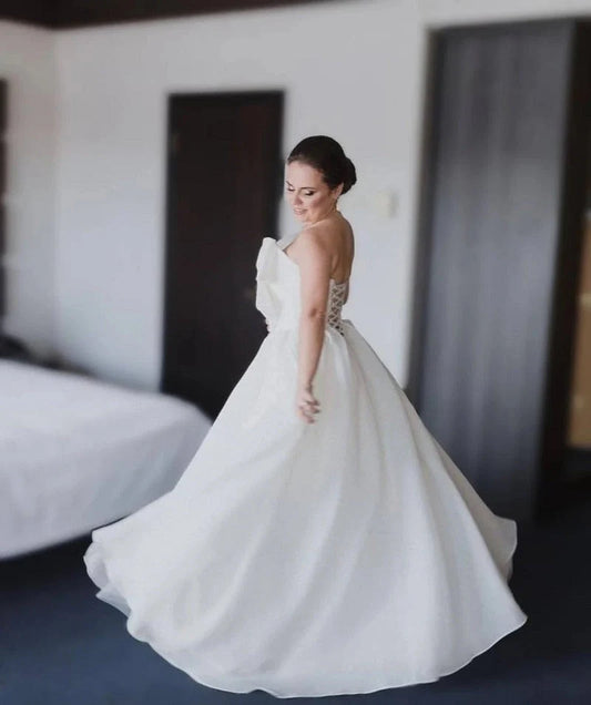 Vestido de novia de gasa con mangas casquillo y corte A, vestido de novia de cintura alta, vestidos de novia de moda