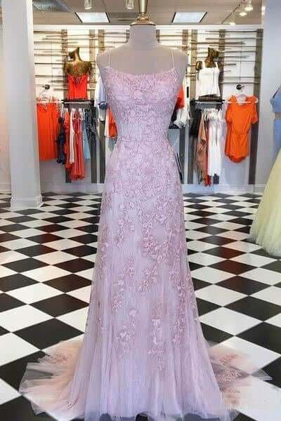Vestidos de fiesta con tirantes finos y espalda abierta, tul degradado, escote en V, color rosa