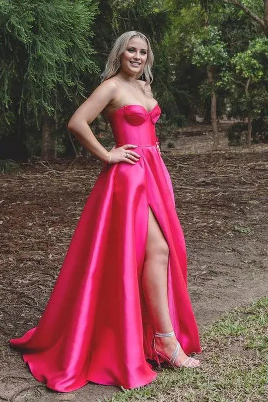 Vestido formal largo de satén sin mangas con corte imperio, corte A y abertura, de Amzcw
