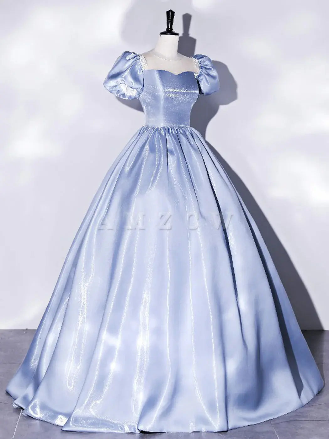 Vestido de fiesta largo de satén azul Amzcw Vestido de noche formal de satén azul Vestido de fiesta en tienda