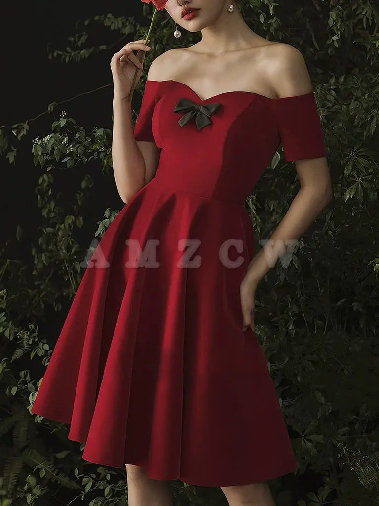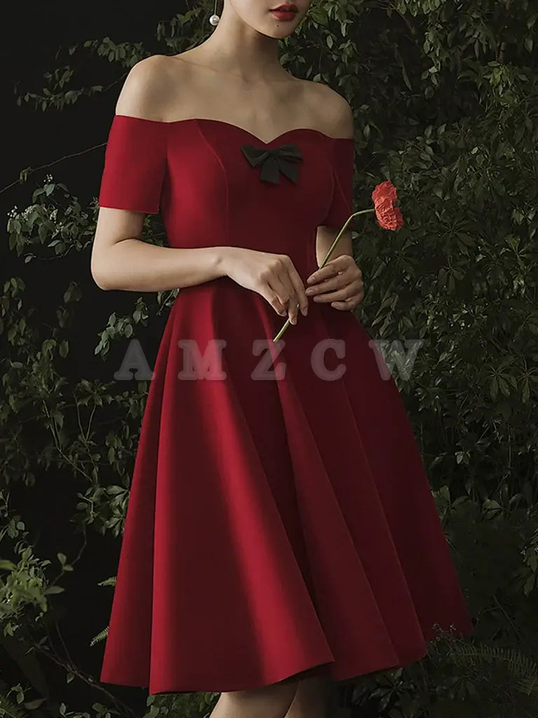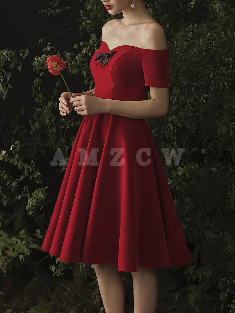 Vestido de fiesta corto con escote corazón color burdeos de Amzcw, vestido de fiesta color burdeos para regreso a casa, vestido de fiesta en tienda