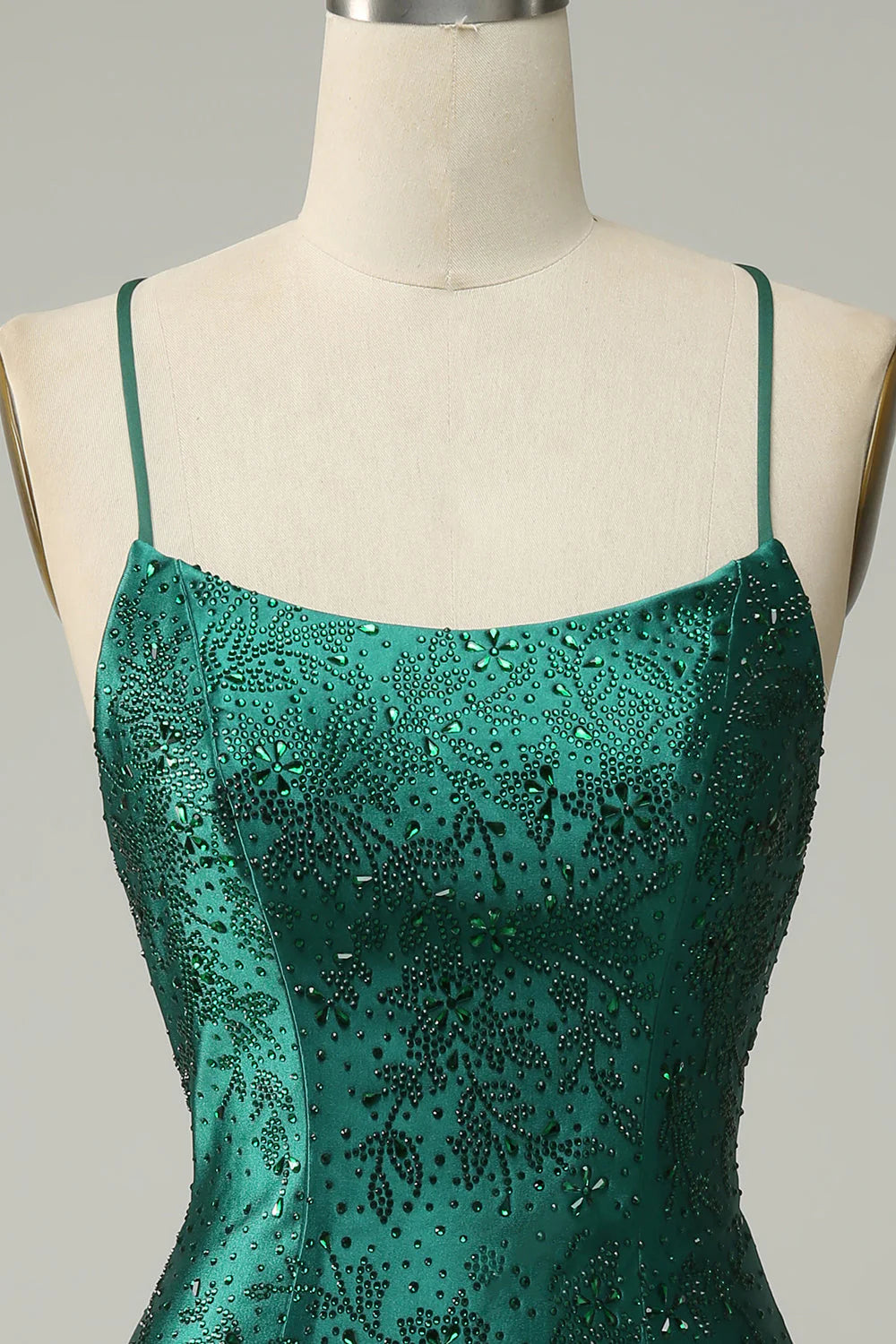 Vestido de fiesta ajustado con cuentas verde oscuro y espalda cruzada de Amzcw