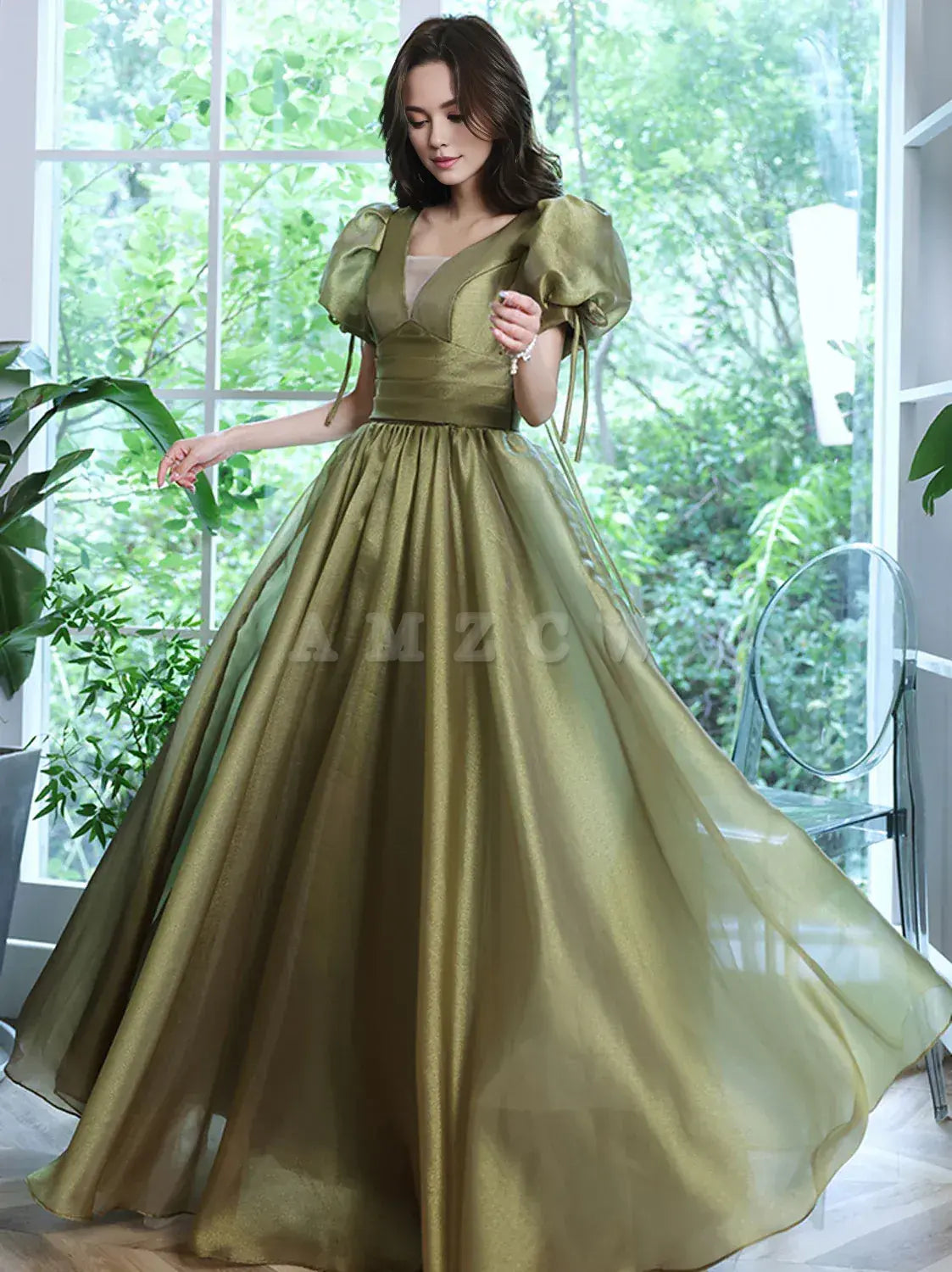 Vestido largo de fiesta de tul verde Amzcw, vestido largo de noche de tul verde, vestidos formales