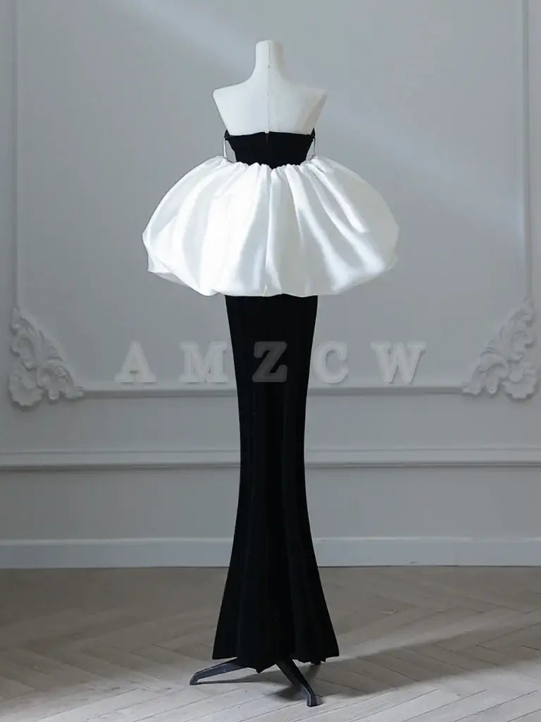 Amzcw Vestido de fiesta largo de terciopelo negro con corte sirena sencillo Vestido de fiesta largo negro Vestido formal en tienda