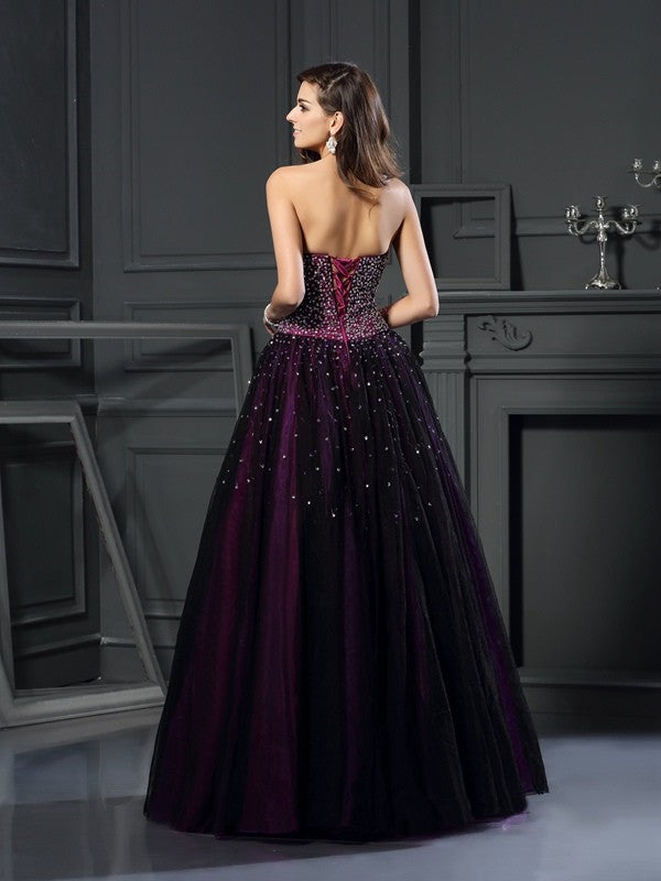 Vestidos de quinceañera largos de satén sin mangas con escote en forma de corazón y cuentas