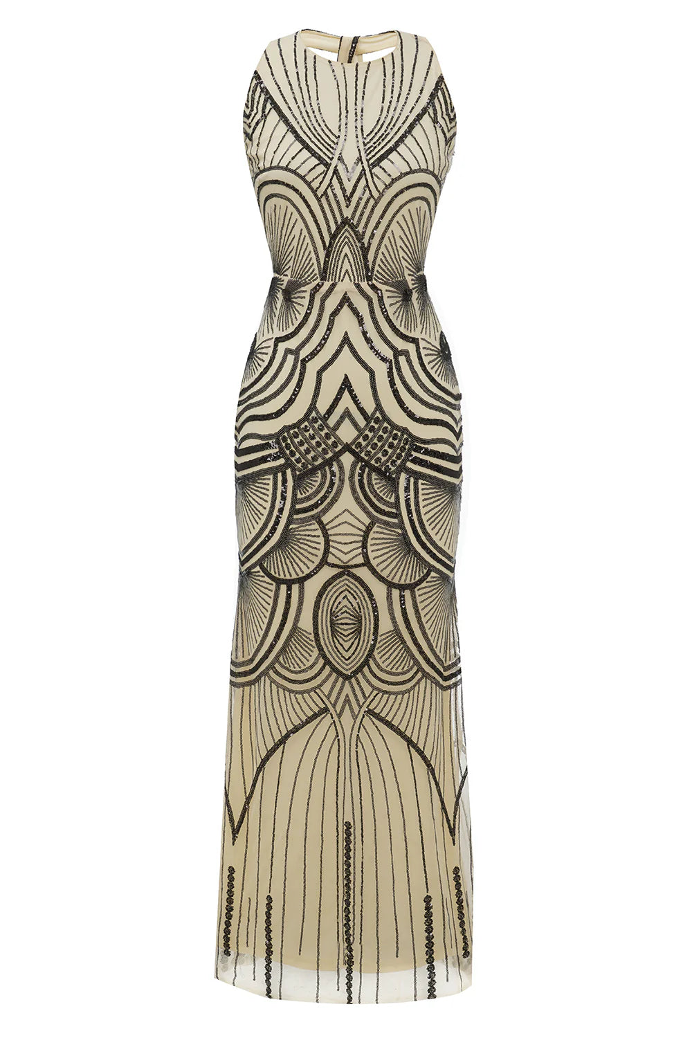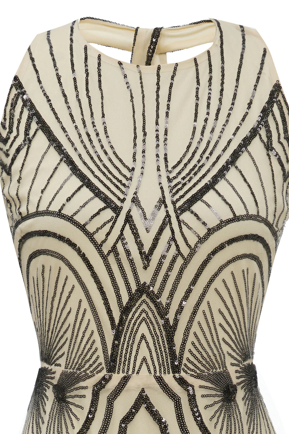 Vestido de fiesta formal de los años 20 en color negro marfil