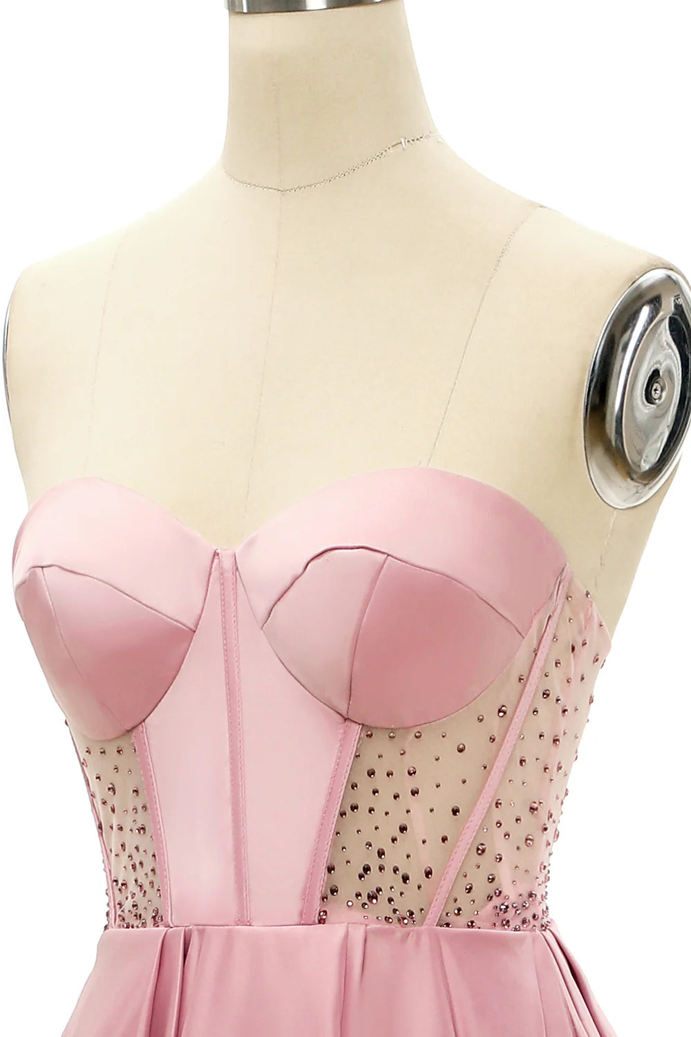 Vestido de fiesta largo con escote en forma de corazón y cuentas en color rubor