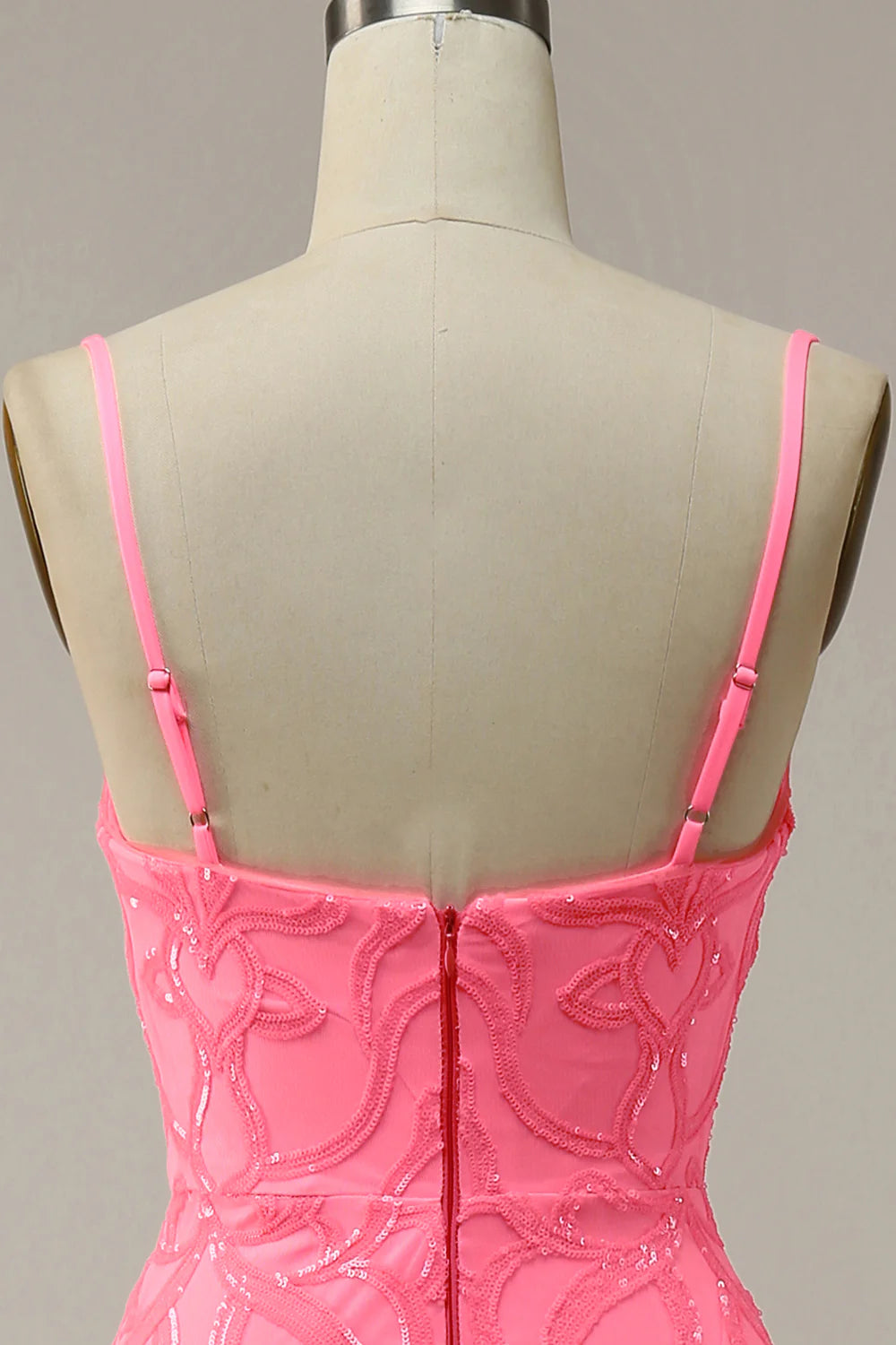 Vestido de fiesta con lentejuelas y purpurina en color rubor