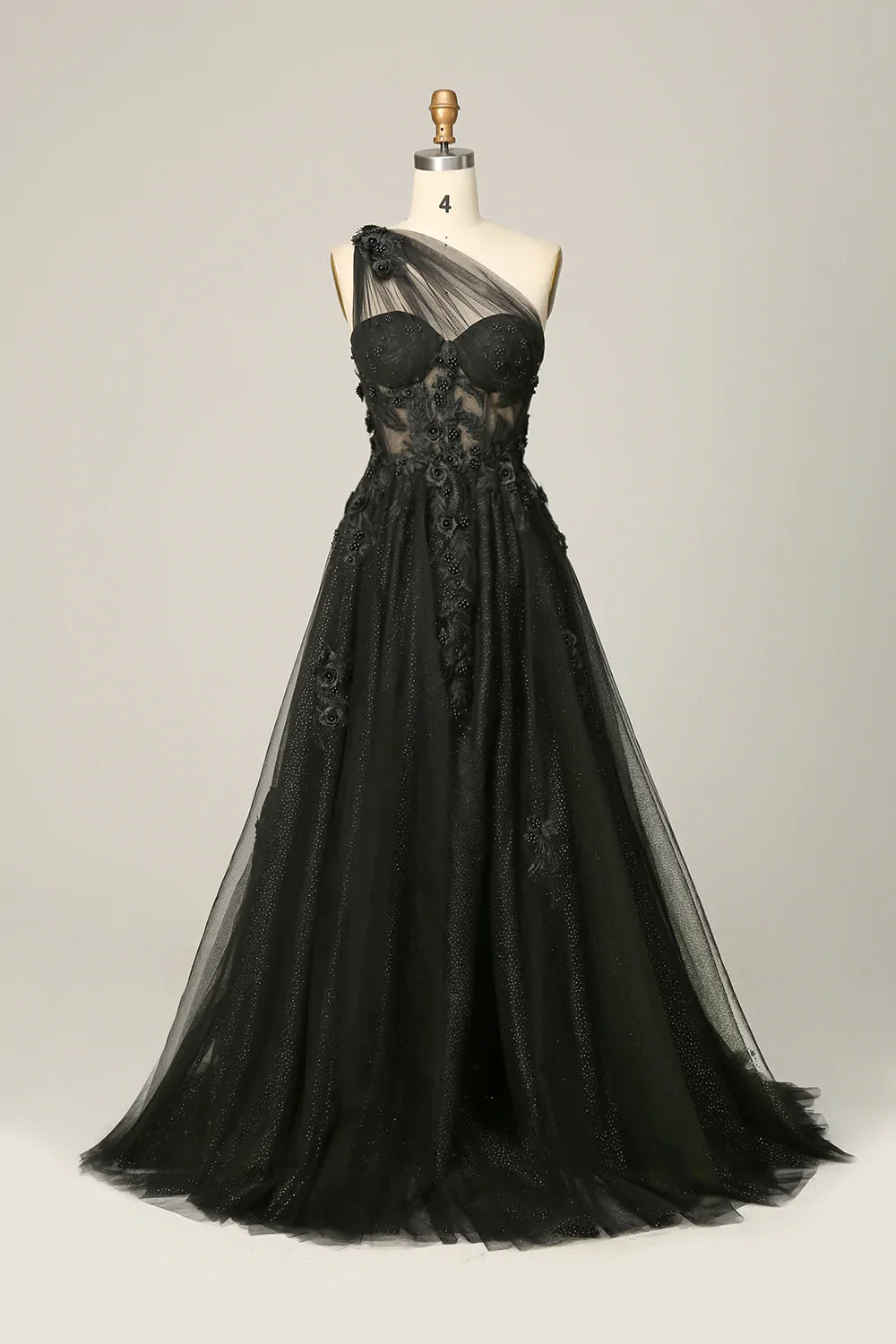 Elegante vestido de fiesta largo morado de corte A con un solo hombro y apliques