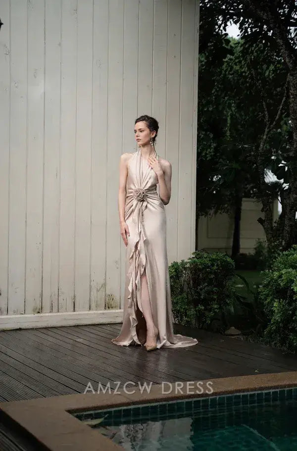 Este vestido se confecciona a medida. Ya sea que elija una talla estándar o medidas personalizadas, nuestros sastres confeccionan cada vestido a medida.