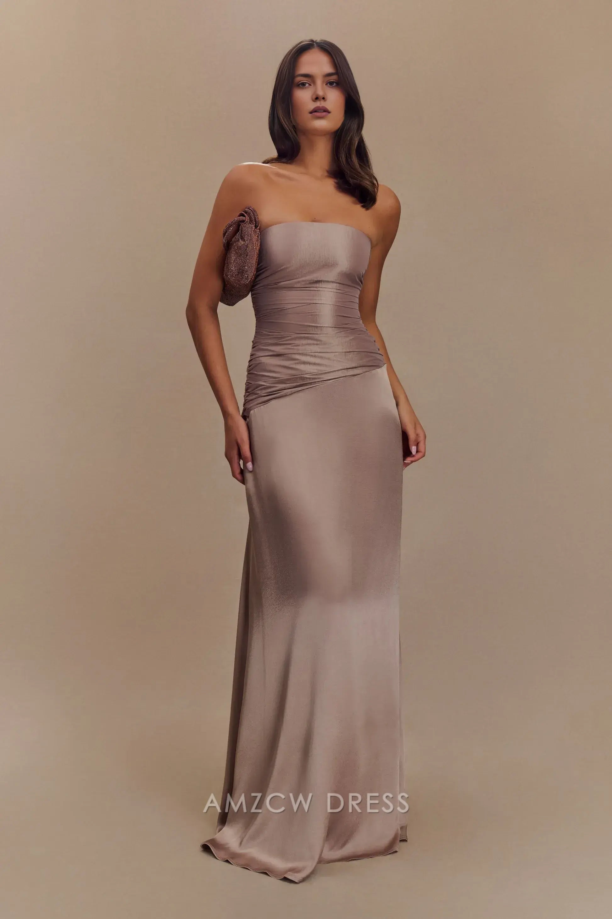 Amzcw Elegantes Vestidos de Fiesta Línea A Satén Verde Azulado con Hombros Descubiertos Mini Vestido Corto Venta Caliente para Mujeres