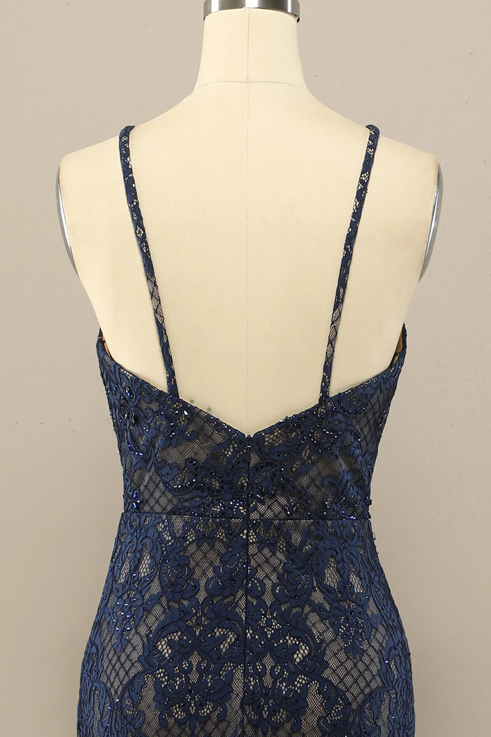 Vestido de fiesta largo de encaje de sirena azul marino