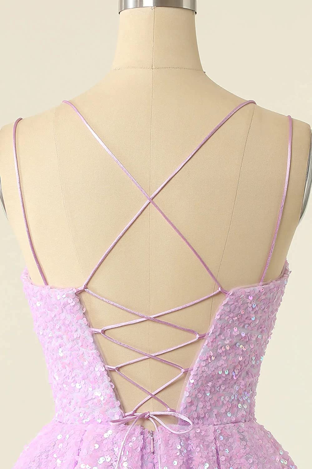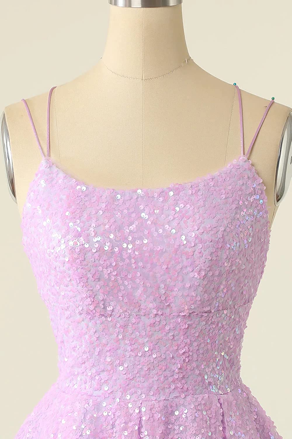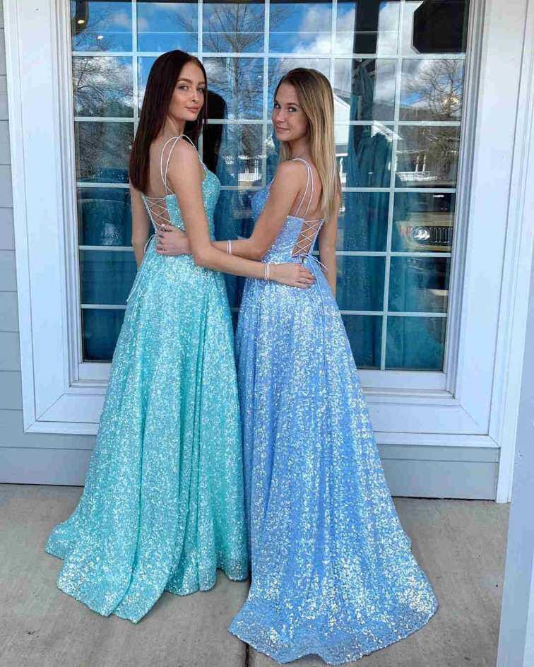 Vestidos de fiesta sin mangas con tirantes finos, corte A y lentejuelas