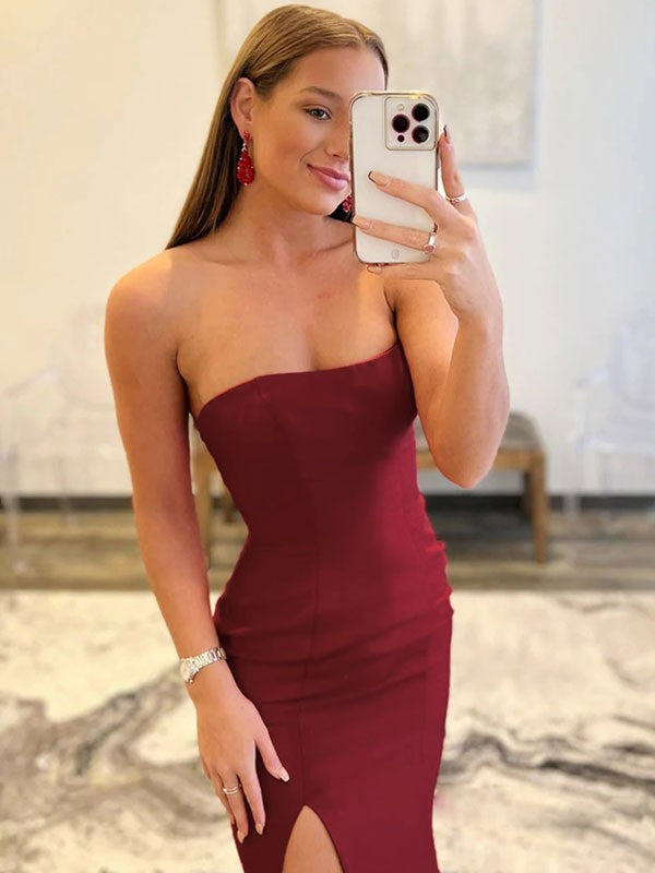 Vestidos de corte tubo/columna de crepé elástico, sin tirantes, sin mangas y con cola larga