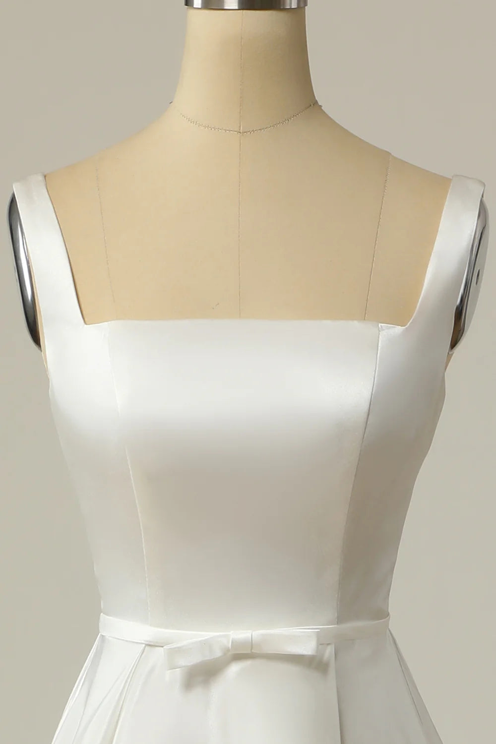 Vestido de novia largo blanco con escote cuadrado y corte A sencillo