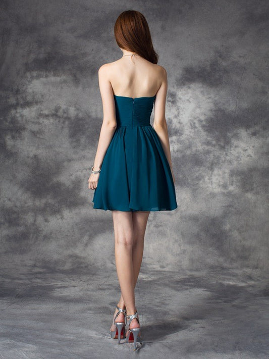 Sukienki z szyfonu, krótkie, bez rękawów, w kształcie litery A/księżniczki, z falbankami i dekoltem w serduszko