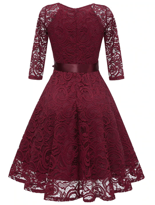 Sukienki koktajlowe w kształcie litery A, sukienka w stylu vintage, na imprezę, długość do kolan, krótki rękaw, dekolt w serek, spandex, wstawka z koronki