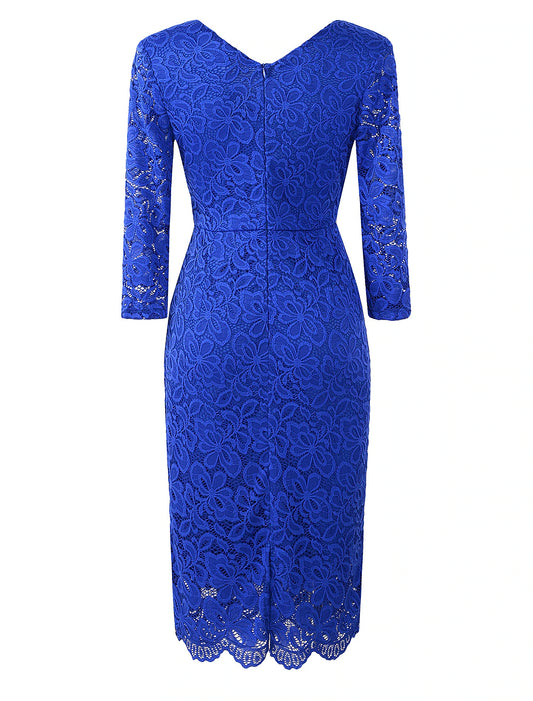 Sukienki koktajlowe w stylu ołówkowym / kolumnowym, sukienka w stylu vintage, na imprezę, długość do kolan, rękaw 3/4, dekolt w serek, jesień, koronka z koronkową wstawką