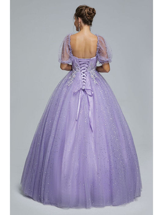 Suknie balowe, sukienki na studniówkę, sukienki dla księżniczki, sukienki na zakończenie szkoły, długość do ziemi, krótki rękaw, tiul z aplikacją z cekinów