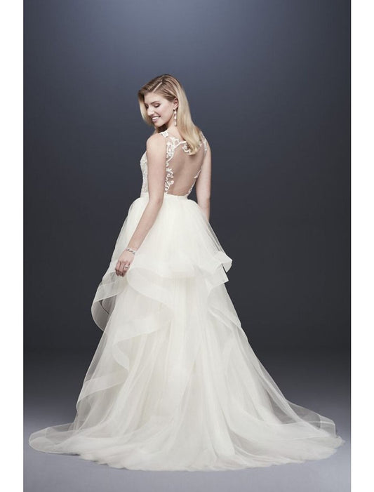 Suknie ślubne Hall Sparkle & Shine w stylu casual z odkrytymi ramionami, z krótkimi rękawami i trenem typu sweep, z cekinami