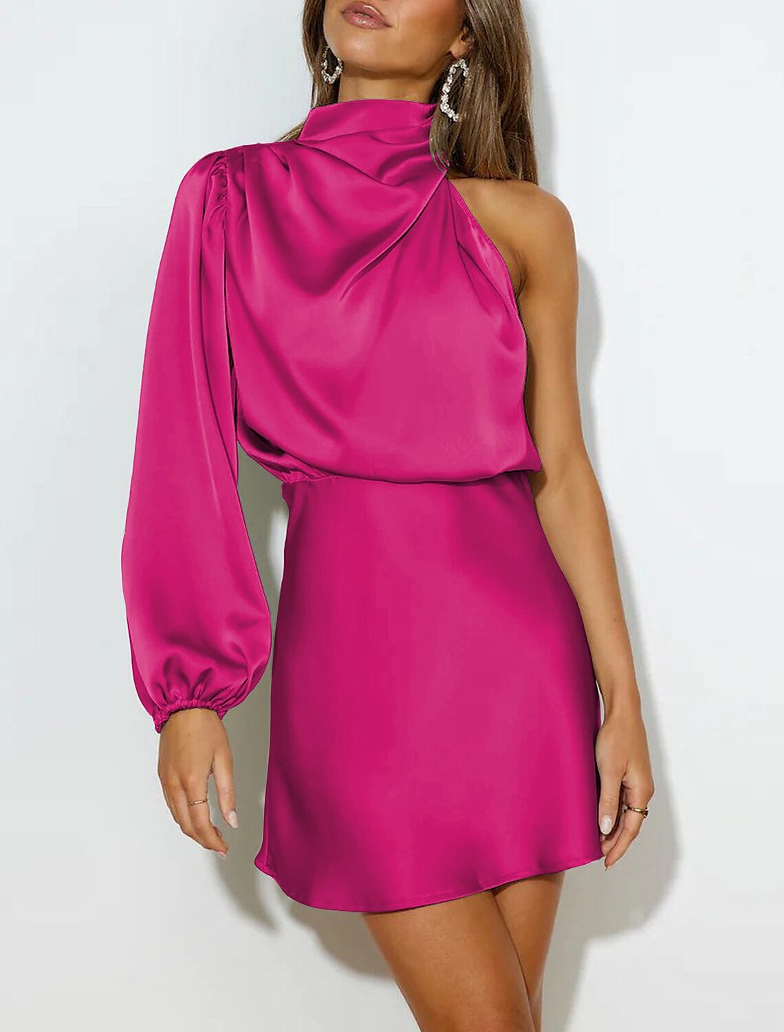 Suknie dla gości weselnych w kształcie litery A Suknia wieczorowa Sweet 16 Półformalna z trenem typu sweep Długi rękaw Wysoki dekolt Elastyczna satyna Odkryte plecy z marszczeniami