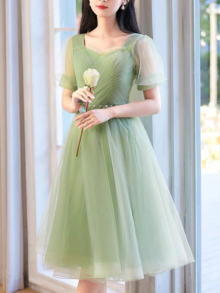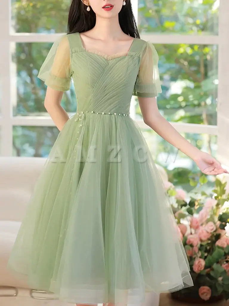 Amzcw A-Line Zielona tiulowa krótka sukienka na studniówkę Zielona krótka formalna sukienka na studniówkę w sklepie