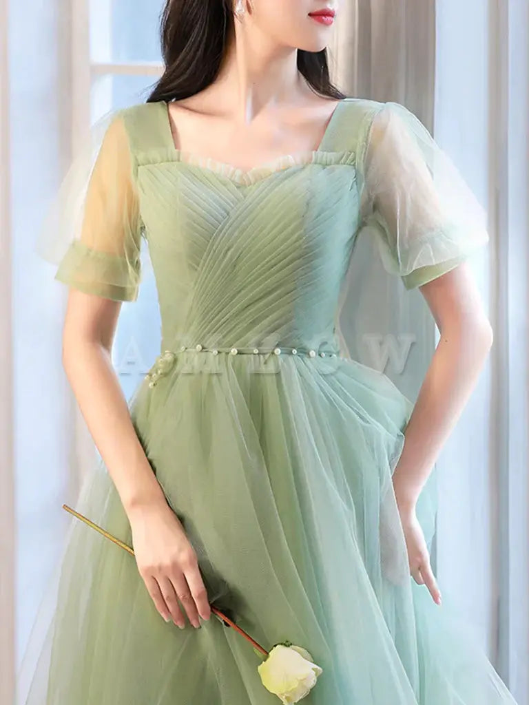 Amzcw A-Line Zielona Tiulowa Krótka Suknia Balowa Zielona Krótka Formalna Sukienka Suknia Balowa w Sklepie