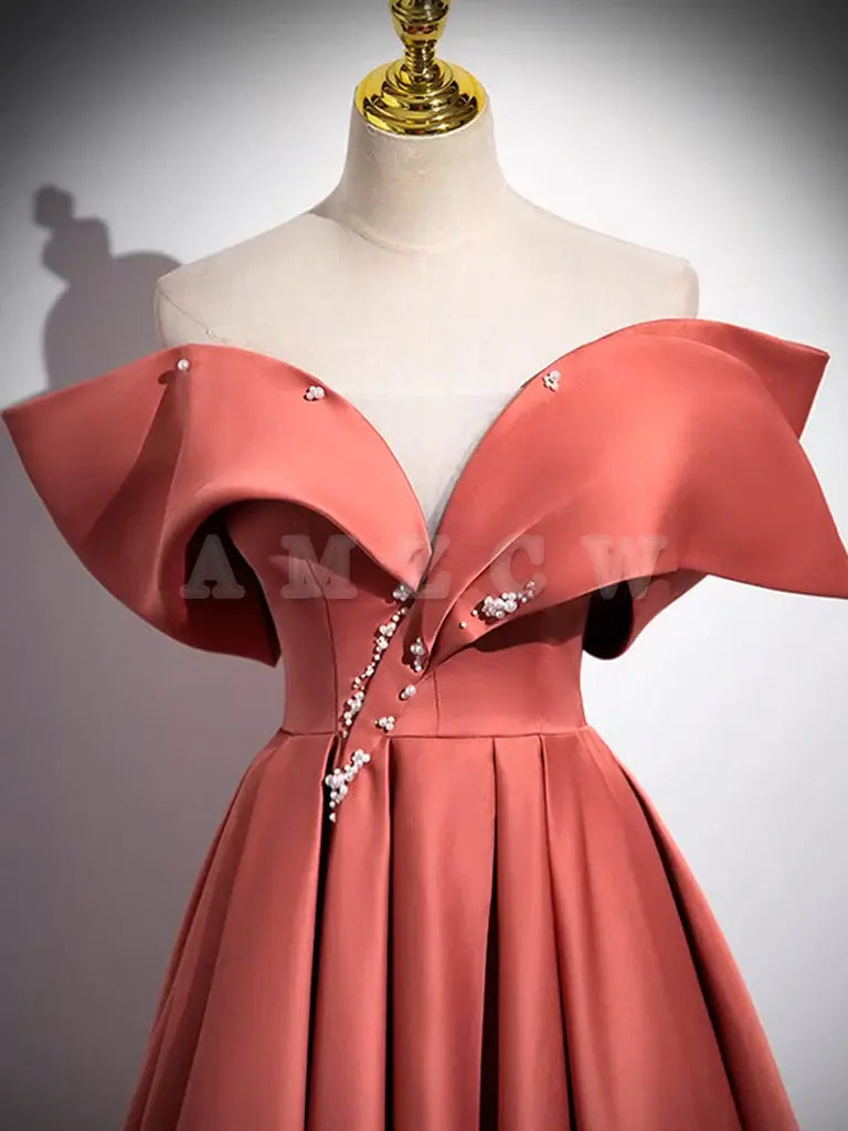 Sukienka wieczorowa Amzcw A-Line z odkrytymi ramionami i satynową długą sukienką wieczorową w kolorze arbuza, długa formalna sukienka w sklepie