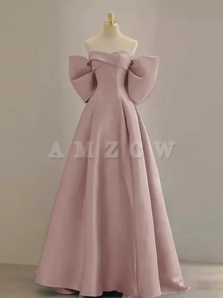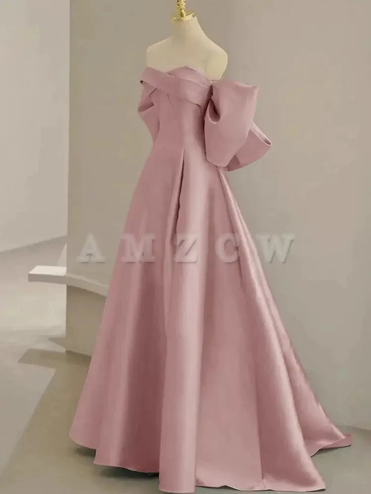 Sukienka wieczorowa Amzcw z dekoltem w serek i satynową różową długą sukienką wieczorową w kolorze różowym, dostępna w sklepie