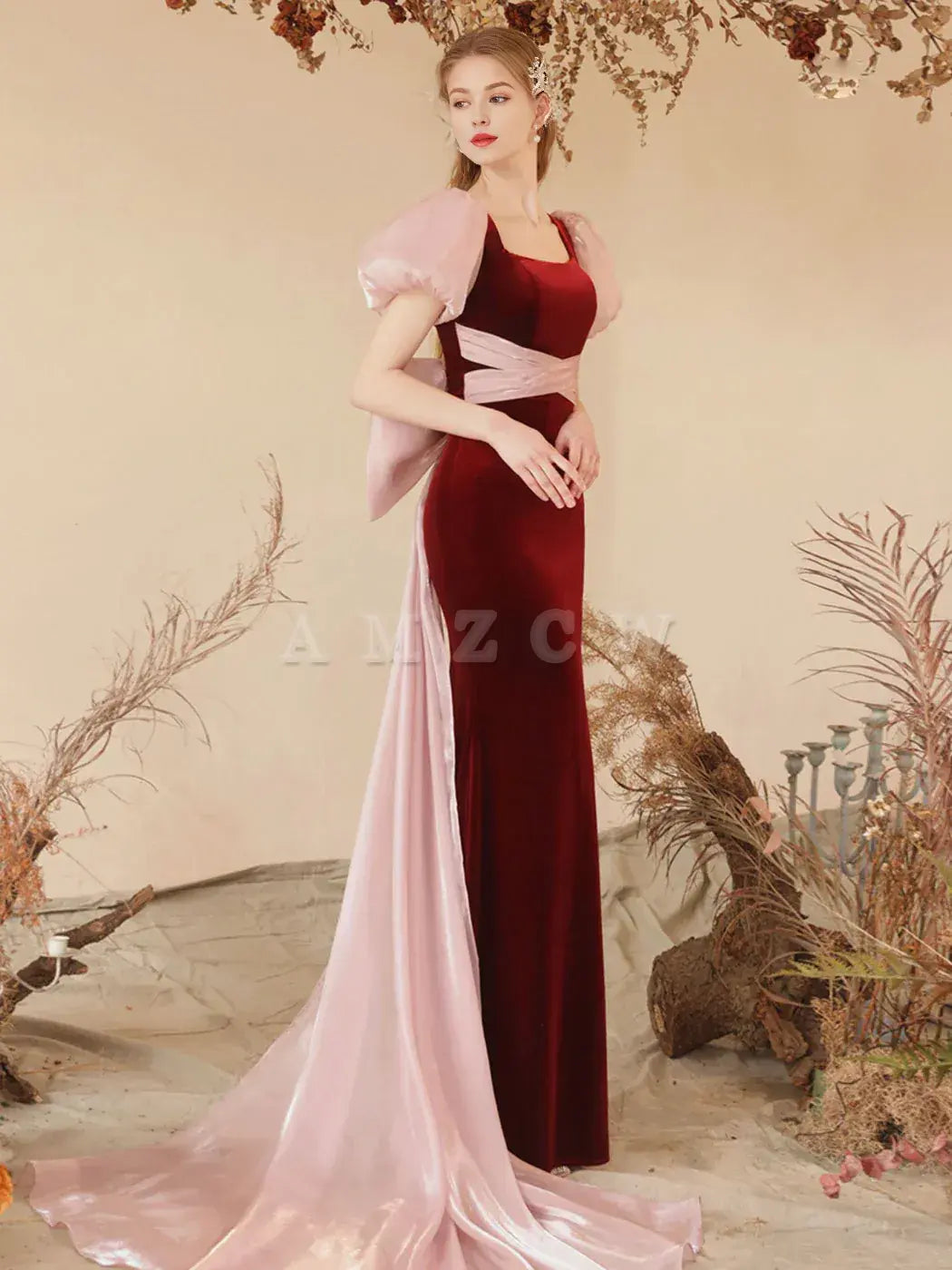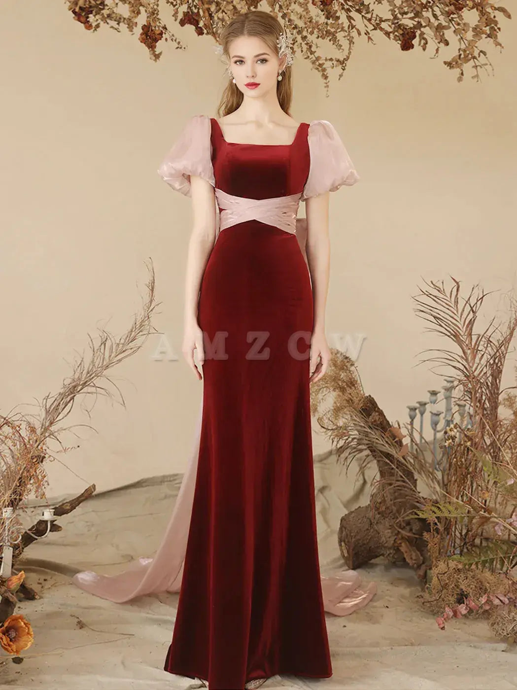 Amzcw Burgundowa syrenka aksamitna długa suknia balowa Burgundowe sukienki formalne suknia balowa w sklepie